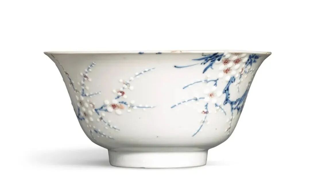 清康熙 青花釉里红堆白喜上眉梢图盌 《大明宣德年制》仿款