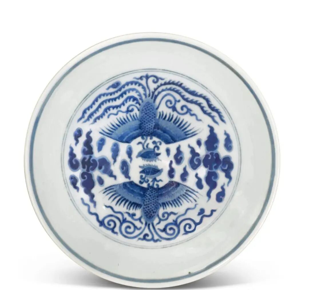清嘉庆 青花云凤纹盘 《大清嘉庆年制》款