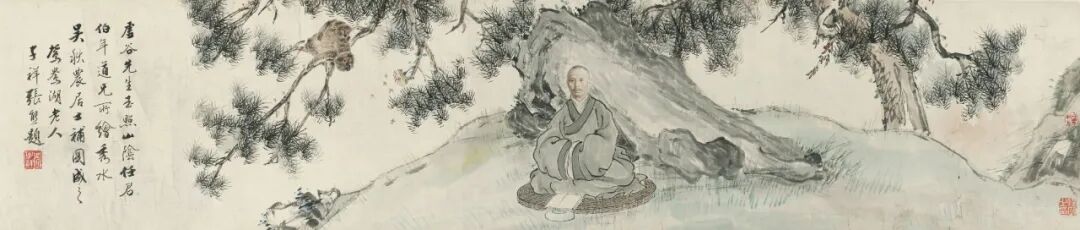 虚谷给友人画像,友人们也给虚谷画像,在下面这幅多人合作的《虚谷肖像》,特别体现了“中西生硬结合”这件事,虚谷那个头,就是典型西方光影的技法,但是身体和背景又是中国的画法,所以看起来就像是强行ps上去的一样,这也是一种特殊的时代印记,挺有意思的。