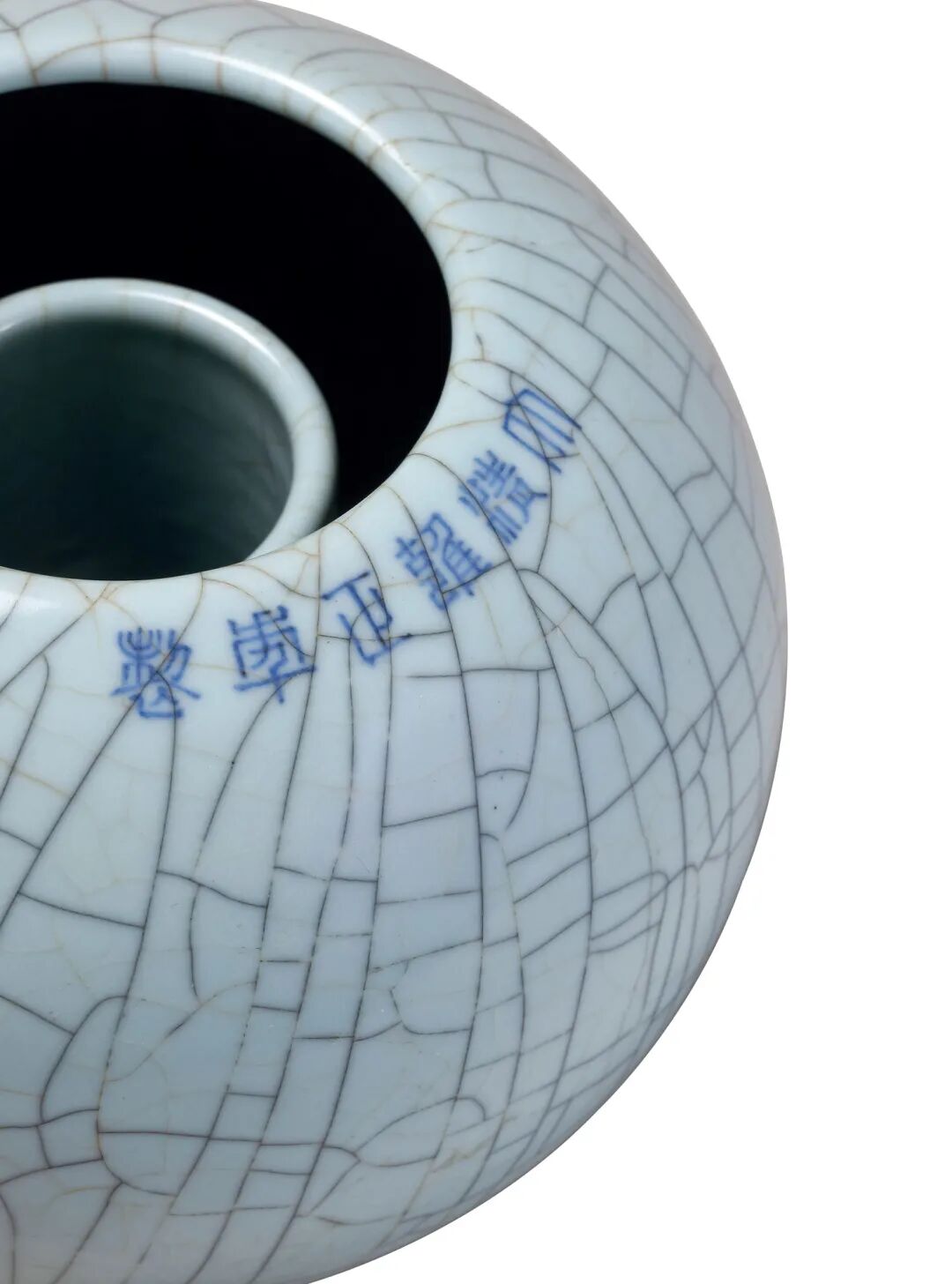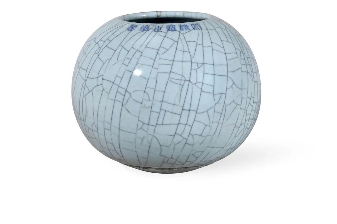 拍品呈凸球体,古雅隽美,色古而宝光内蕴,质朴而莹润凝厚。器内圆柱状直管,一体天成,匠心独运,无不彰显出榷陶使者唐英高超的制瓷技艺。其内圆柱状直管,可直接栽花之用即可成为书案上的花器,一如同时期“缂丝博古书幌”所示,内插灵芝瑞物与四时花卉,与香炉、画轴、书籍、书镇等文房同列,展现书斋之文气与风雅,以助胤禛之雅兴。若不插花之时,亦可作为内廷陈设,其静穆之釉色,令人观之抚之皆宜,不禁赞其釉色、造型之佳妙。属雍正帝御用的上品花器,专门供插花陈设之用。