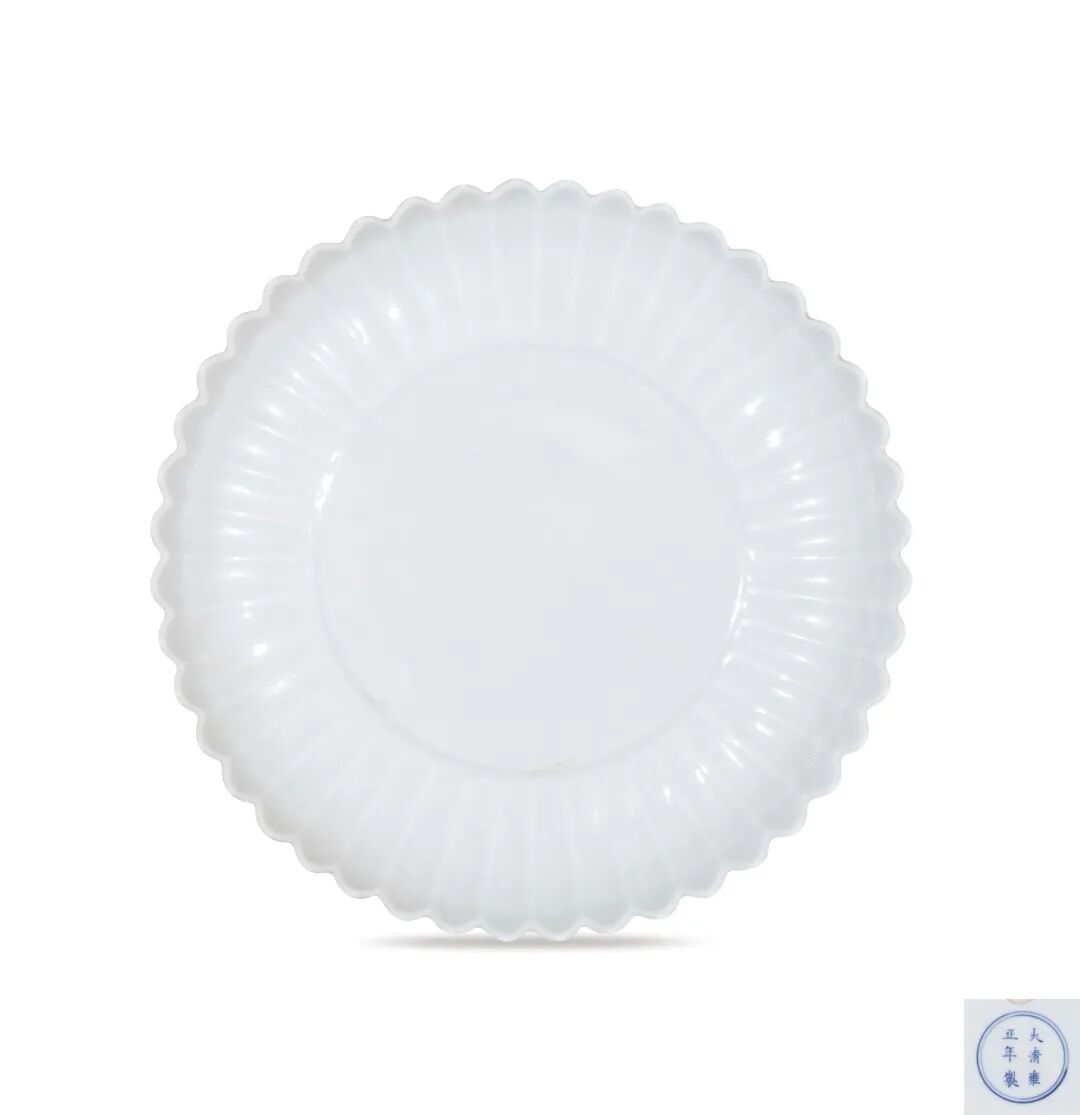 清雍正 甜白釉菊瓣盘