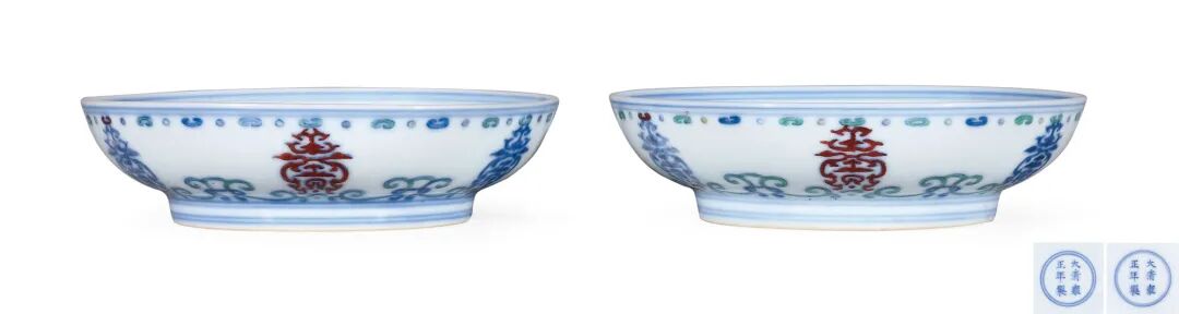 清雍正 斗彩寿字贯套纹盘(一对)