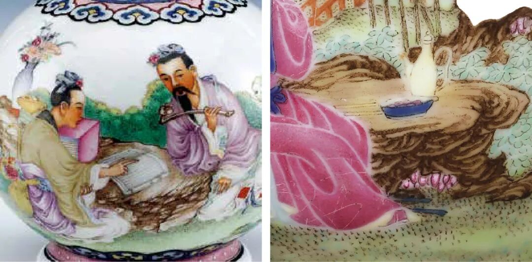 (左)清乾隆 珐瑯彩人物图瓶 上海博物馆藏