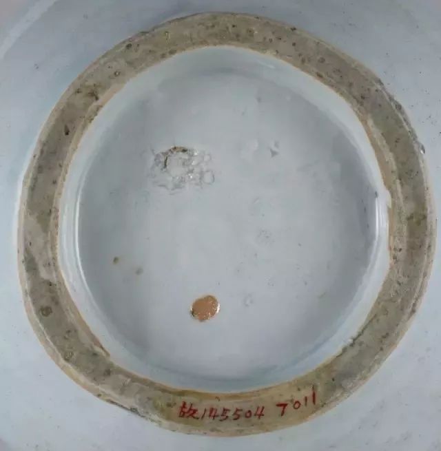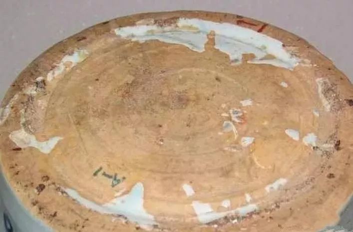 瓶、罐类是足圈端垫烧的,而瓷盘除了特别受到重视而修削细致这一点外,它是足圈端与盘底同时垫烧的。