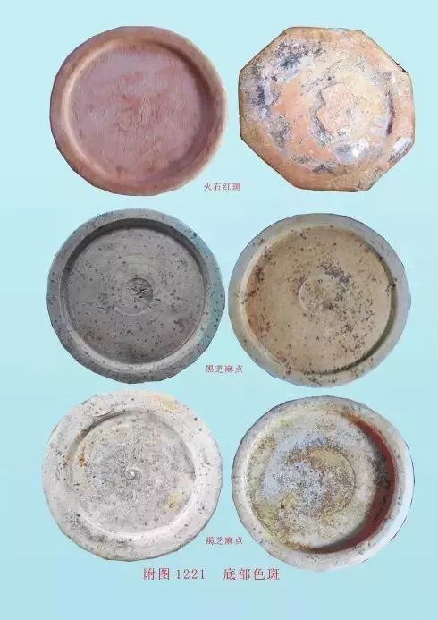火石红斑和芝麻斑点见附图1221。上图为火石红斑,中图为黑色芝麻点,下图除了有黑色芝麻点,还含有褐色芝麻点。
