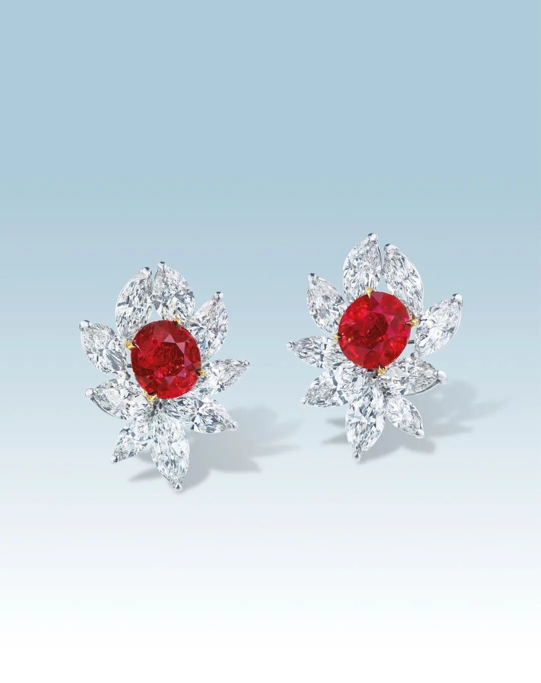 5.19及5.03克拉椭圆形缅甸天然鸽血红红宝石及钻石耳环