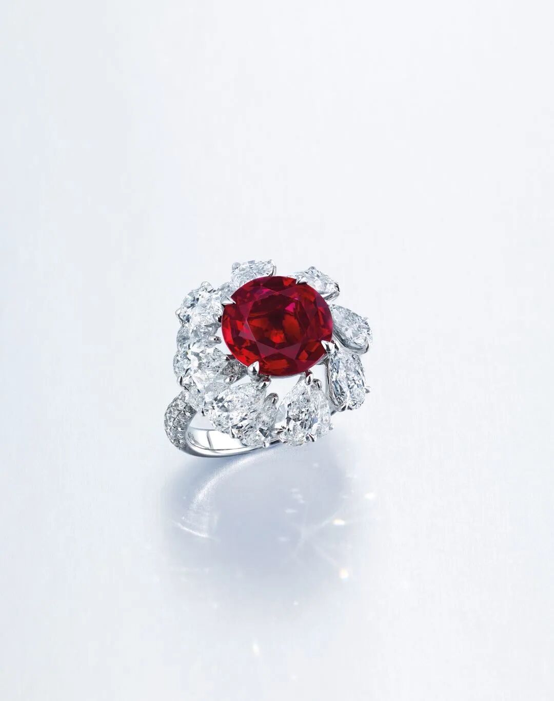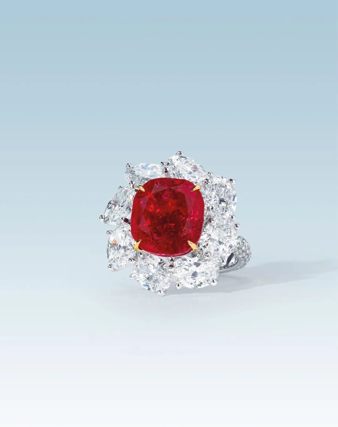 由于缅甸矿场近年开采的大颗红宝石持续减少,5克拉以上的顶级红宝石可谓极致罕有。此次拍卖的领衔红宝石拍品为一枚8.11克拉缅甸天然 “鸽血红” 红宝石及钻石戒指,配以一对5.19及5.03克拉缅甸天然 “鸽血红” 红宝石及钻石耳环,珍罕非凡。