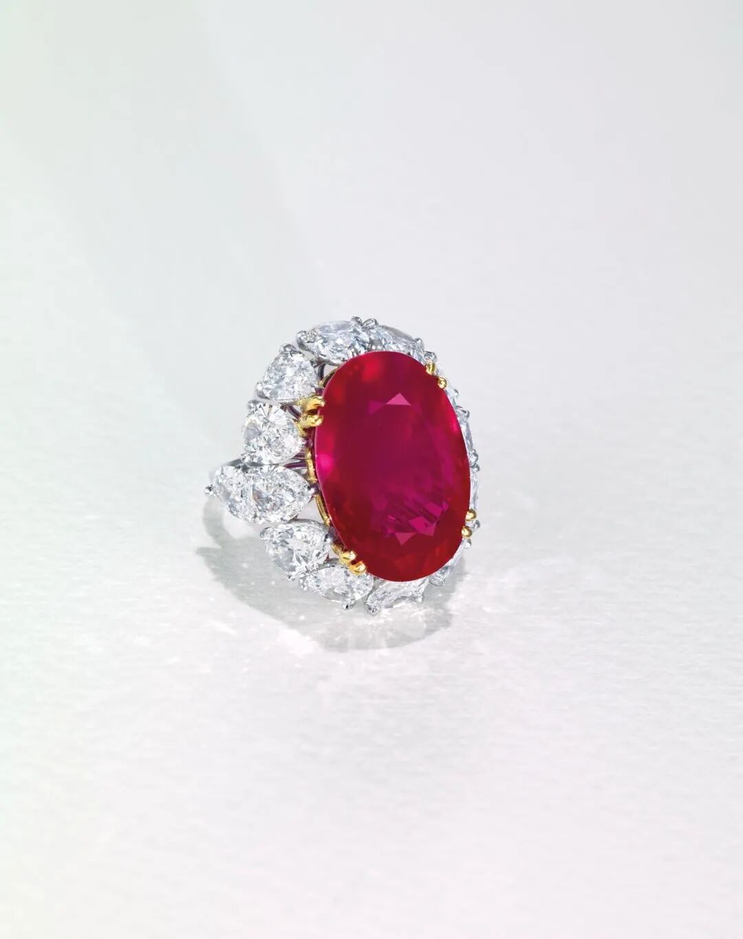 21.54克拉椭圆形缅甸天然红宝石及钻石戒指