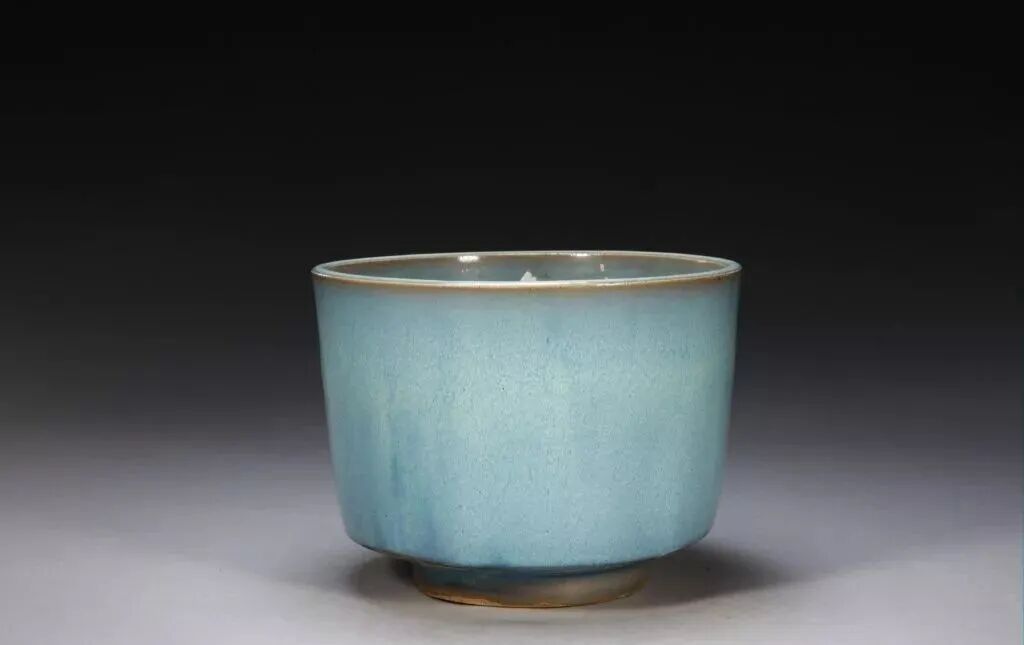 钧窑烧造做工考究的陈设用瓷,如花盆、花盆托、鼓钉洗、出戟尊等。这类陈设用瓷在清宫中多有收藏,被称为传世钧瓷。除此之外,钧窑也生产碗、盘、瓶、炉等日用品,产品多施天蓝色釉。炉直口,深腹折底,宽圈足。折底处有三处露胎痕,呈长条状,原为三足,后磨去。里、外通体施天蓝色釉,釉面有“蚯蚓走泥纹”现象。“蚯蚓走泥纹”是指在釉中呈现一条条逶迤延伸、长短不一的釉痕,如同蚯蚓在泥土中游走留下的痕迹,它是钧瓷的一个重要特征。“蚯蚓走泥纹”产生的原因较复杂,有一种说法是由于钧窑瓷胎在上釉前先经素烧,施釉又特别厚,釉层在干燥时或烧成初期发生干裂,后在高温烧制阶段又被粘度较低的釉流入空隙所造成。炉呈筒形,唇口,平底,下承以三足。内光素无纹饰,外青花装饰。口沿处绘青花单线连续回纹一周,炉底边有两条青花弦线横越三足。腹部以青花料书写有三行波斯文,取自波斯诗人萨迪的诗集《果园》。译文为:“年轻人啊,要敬主就应在今天,明朝人老青春一去不还。只自己守斋还不算真主的穆斯林,还应分出食物周济贫人。如今你心无烦扰,身体有力,身在宽广球场应把马球猛击。为政万万不可刺伤平民百姓的心,欺压百姓就是在掘自家的根。谦逊的智者宛如果树一棵,挂果越多枝头越加弯曲。”内底署青花 楷书“天顺年”三字款。