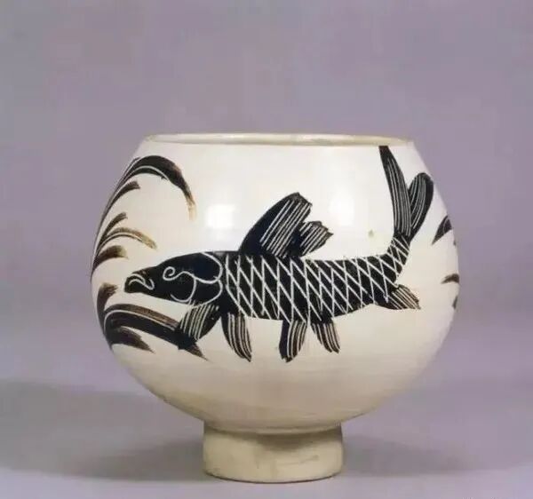 金代磁州窑白底黑彩绘划花鱼纹钵,故宫博物院藏