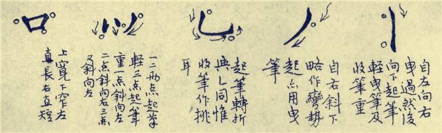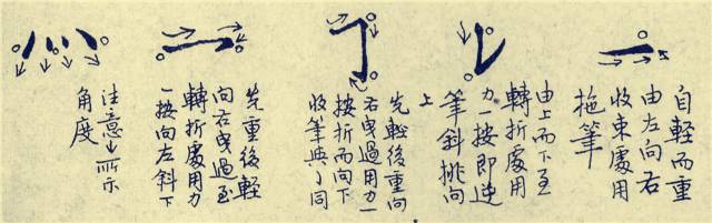 钢笔行书的点画写法,尽管来自于毛笔行书,但用笔远比毛笔行书简单,它不强调逆锋起笔、中锋行笔、回锋收笔的法则。