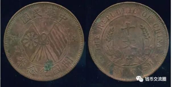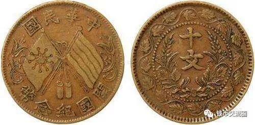 辛亥革命胜利后,中华民国成立,由于币制尚未建立,除四川改铸大汉银币,福建改铸中华元宝外,主要的造币厂,大都仍沿用前清钢模铸造银币,以供流通需要。中国民国时期发行的一种货币。铜币直径约3厘米,是机器铸造的现代化货币,刻有面值和双旗图案。