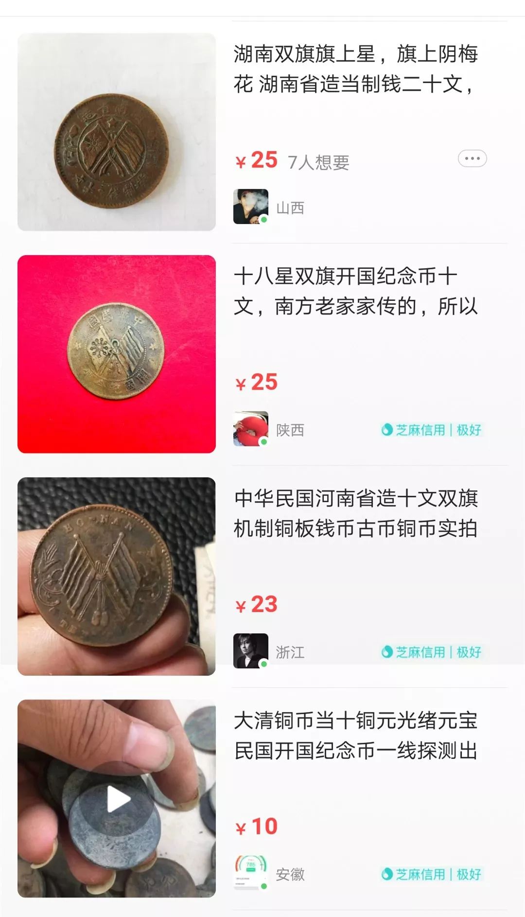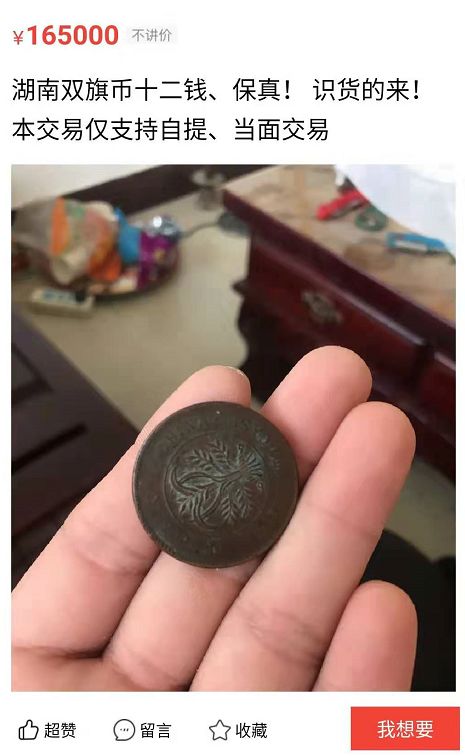 没错,这种普通的双旗币,市场价甚至不到50元,极美品也就200元左右,远远达不到上万的地步。这位藏友想要卖那么高的价钱,估计还要等上个100年......能舍得花那么多钱的收藏家,哪个不是身经百战的资深玩家,怎么会看不出来哪个值钱哪个不值钱呢?恐怕到最后没有等到冤大头,倒是引来一批诈骗份子!