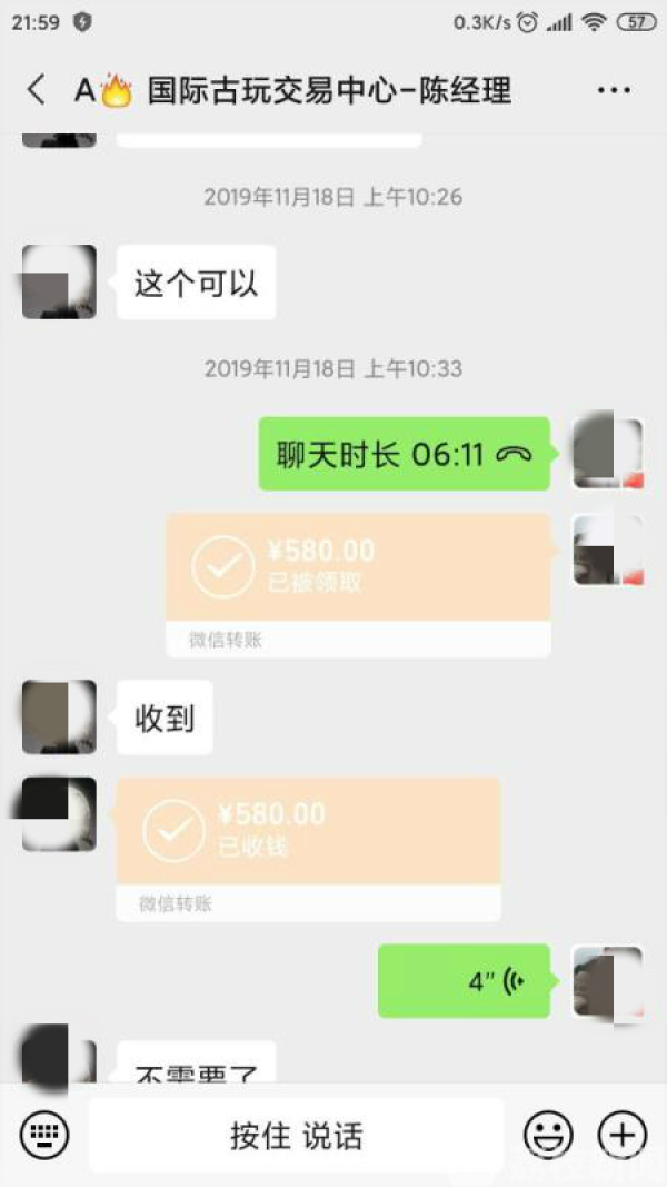杨先生在网页上输入身份信息、联系方式和宝物详情等资料后,很快接到对方的回复,双方也添加了微信。杨先生根据对方要求,发去两枚古钱币的照片。对方回复,这两枚古钱币都有成交历史记录,价格在30至40万元之间。杨先生追问如何能成功出售。对方告知:“我们平台上就可以挂售,但需要支付580元的上架费。”于是,杨先生先花580元上架费挂售其中一枚“大清十文”铜币,接着对方发来一条已上架的网络链接,并承诺15天内会有买家咨询购买宝物。几天后,杨先生打探钱币挂售进展,对方让他耐心等待。