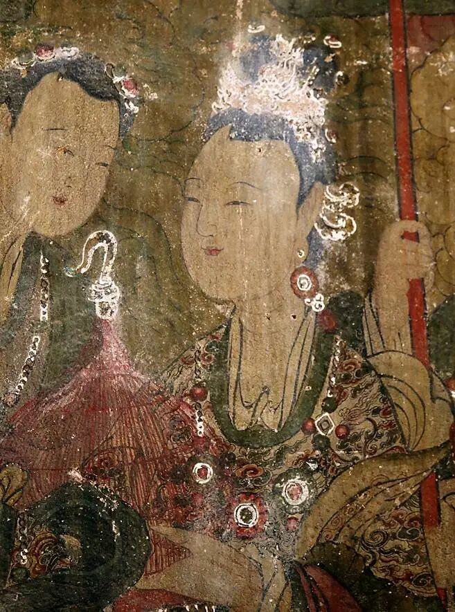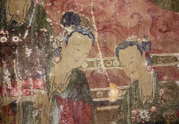 从绘画材料上看,同样使用了青金石、朱砂等珍贵的天然矿物质颜料。