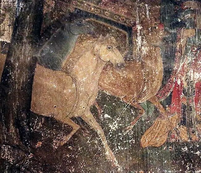 出于文物保护的考虑,承恩寺壁画暂不开放,先来看看这些细节图,大饱眼福吧~龙,是古代民间的禁物,承恩寺敢画龙于壁可见寺院地位之高。并且所画之龙,都是皇家才能使用的“五爪龙”,再次印证了承恩寺和皇家的关系不一般。在这四幅龙形壁画中,白龙是保存最好的。你看它身姿灵动,顾盼神飞,手握宝珠,盘旋于祥云之间,气势非凡。在这4幅体现了古人浪漫想象力的壁画旁边,还有两幅尤为宝贵的“放生图”“放飞图”壁画,它们和一般寺院常见的神佛题材不同,讲述的是凡人放生的故事。一幅是将鱼虾放归河水的“放生图”,一幅是将禽鸟放还于天空的“放飞图”。和法海寺壁画不同,法海寺画的是神,承恩寺画的是人,法海寺描绘的天上的故事,承恩寺记录的则是人间的景象,相比之下,承恩寺壁画的历史、人文价值都尤其突出。过去农历四月初八,是民间的“放生日”,寺院常有放生活动。在皇家,我国历史有不少皇帝都很重视放生,以此祈求长生。承恩寺的这两幅壁画,画的就是帝后放生(飞)时场景。壁画极尽华丽、繁复之美,人物、服饰、动物、植物都刻画地极为细腻,禁得起“放大镜”的考验。特别是壁画里那些被放生的动物,你甚至能感受到它们重获自由时的快乐!比如“放生图”里两匹奔向人群的马,都没有佩戴缰绳和笼头,显得无拘无束!这种对于动物情绪捕捉和刻画,在其它地方的壁画上是很难见到的。以往我们提起壁画,总会想到敦煌,想到那些宗教题材的壁画。面对陌生的佛仙世界,我们往往不知所云。承恩寺壁画的出现,很大程度上拓宽了我们的认识,原来还有这么“凡间”的壁画,讲的就是凡间凡人的故事!虽然我们现在还没有机会去一睹承恩寺壁画的风采,但希望这篇文章可以点燃一批大小朋友对于壁画艺术的兴趣和热情。