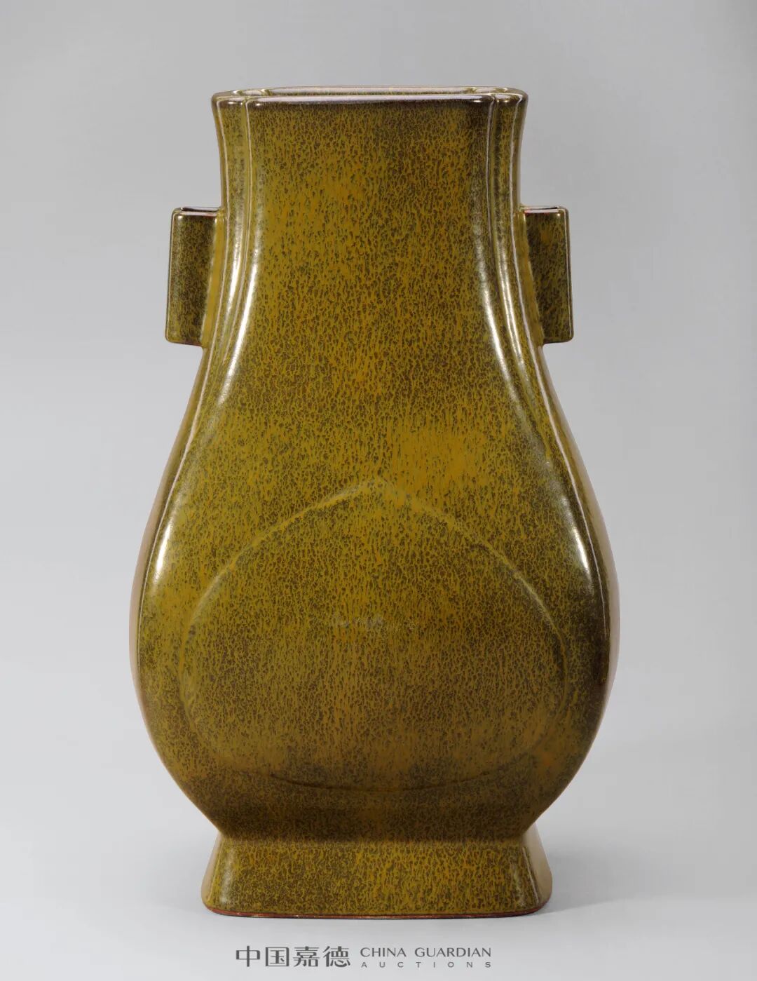 清雍正 厂官釉“鳝鱼黄”杏圆贯耳大瓶