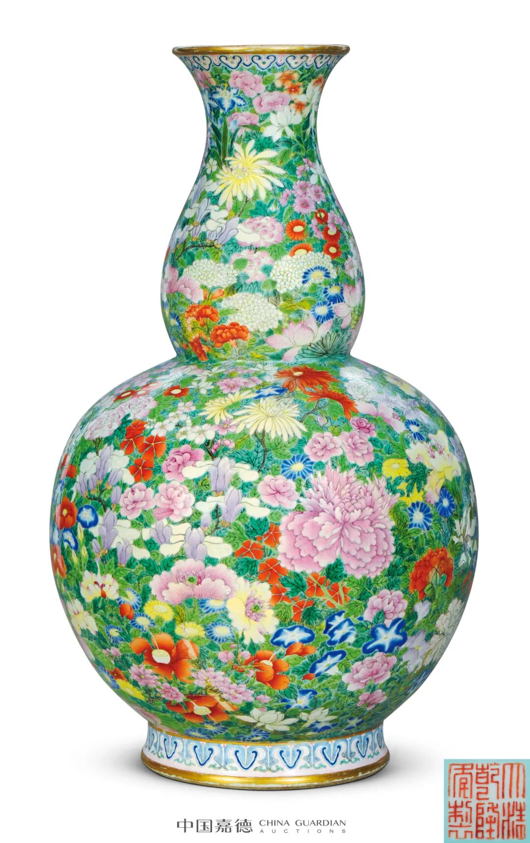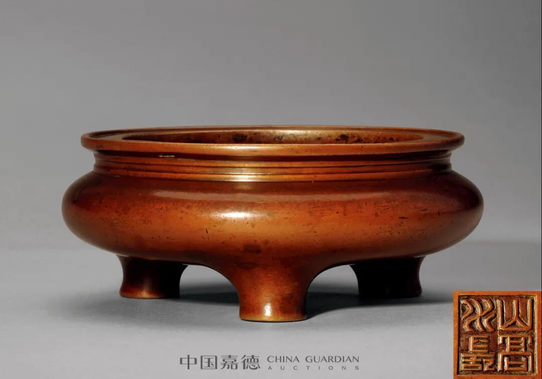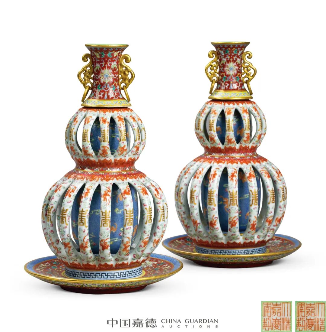 清雍正青花缠枝花卉纹抱月瓶既有摹古又有创新,兼容并蓄,为雍正御窑仿古的杰出之作,极为罕见,终以690万元的成交价力拔本场头筹。清乾隆制洋彩“万花献瑞”大葫芦瓶原为成对烧造,作为陈设器由九江关监督进献给乾隆皇帝,体现了“一年无日不看花”的皇家气象,拍前即为市场关注的焦点,最终以517.5万元成交。“荣斋藏炉”专题8件拍品100%成交,总成交额达1180万元。其中清乾隆鬲式炉沉稳谐美,神韵清雅,以402.5万元成交。