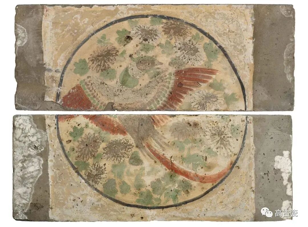 这组圆形纹饰的精美画像砖十分罕见,图案包括真实和神话中的鸟类,不同季节的花卉,还有葡萄等水果。