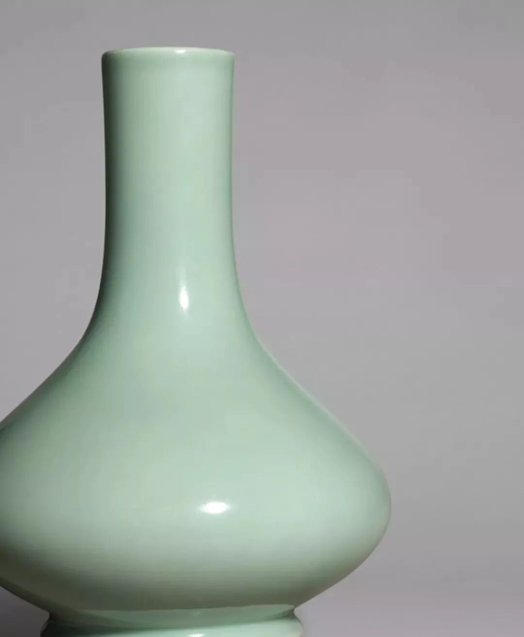 清雍正 粉青釉長頸荸薺瓶 《大清雍正年製》款