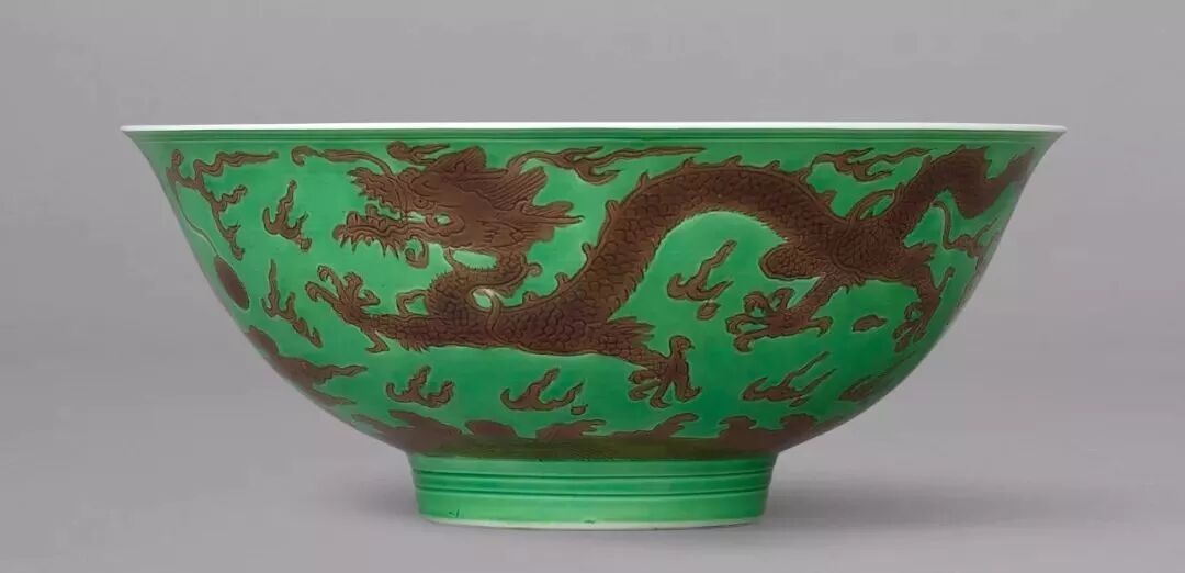 清雍正 綠地紫彩雲龍戲珠紋盌 《大清雍正年製》款