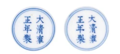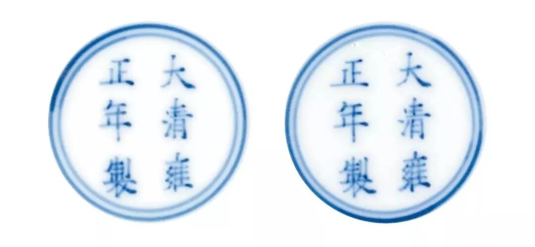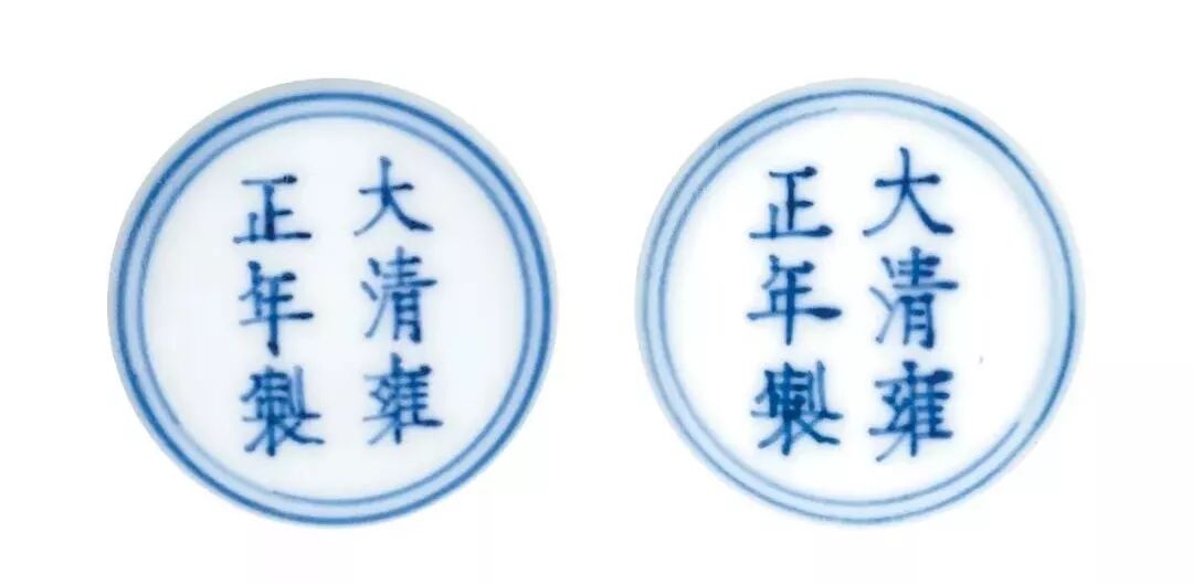 器形相同者,以窰變釉更為常見。比較一雍正帶款例,售於香港蘇富比1980年5月20日,編號125。另一例則售於倫敦蘇富比1996年12月17日,編號126。