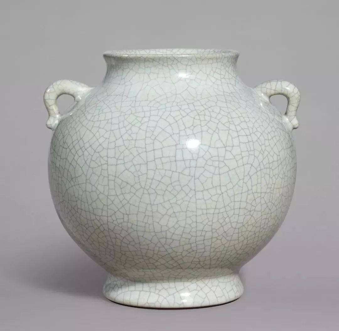 同器形並帶乾隆年款之開片紋罐甚爲罕見,據現時記載疑爲孤例。參考一尺寸較大之仿哥釉例,頸較長,飾獸面鋪首耳,乃飛鳥井家族舊藏,售於香港佳士得2007年5月29日,編號1528。