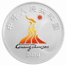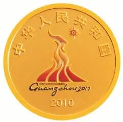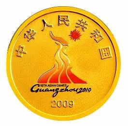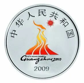 后面为纪念第16届亚洲运动会在我国广州举办,中国人民银行发行了2组金银币,每组一金一银,分别于2009年和2010年发行。