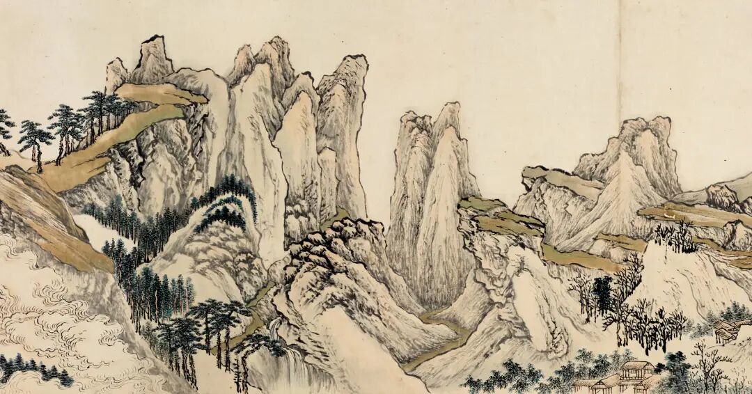 东京中央唐维:像这些山石肯定都是他的笔,因为这种很典型的三远结合。我估计就是一些山石,树木部分的这种烘染,可能有陆道淮的影子,其他都是王石谷的。