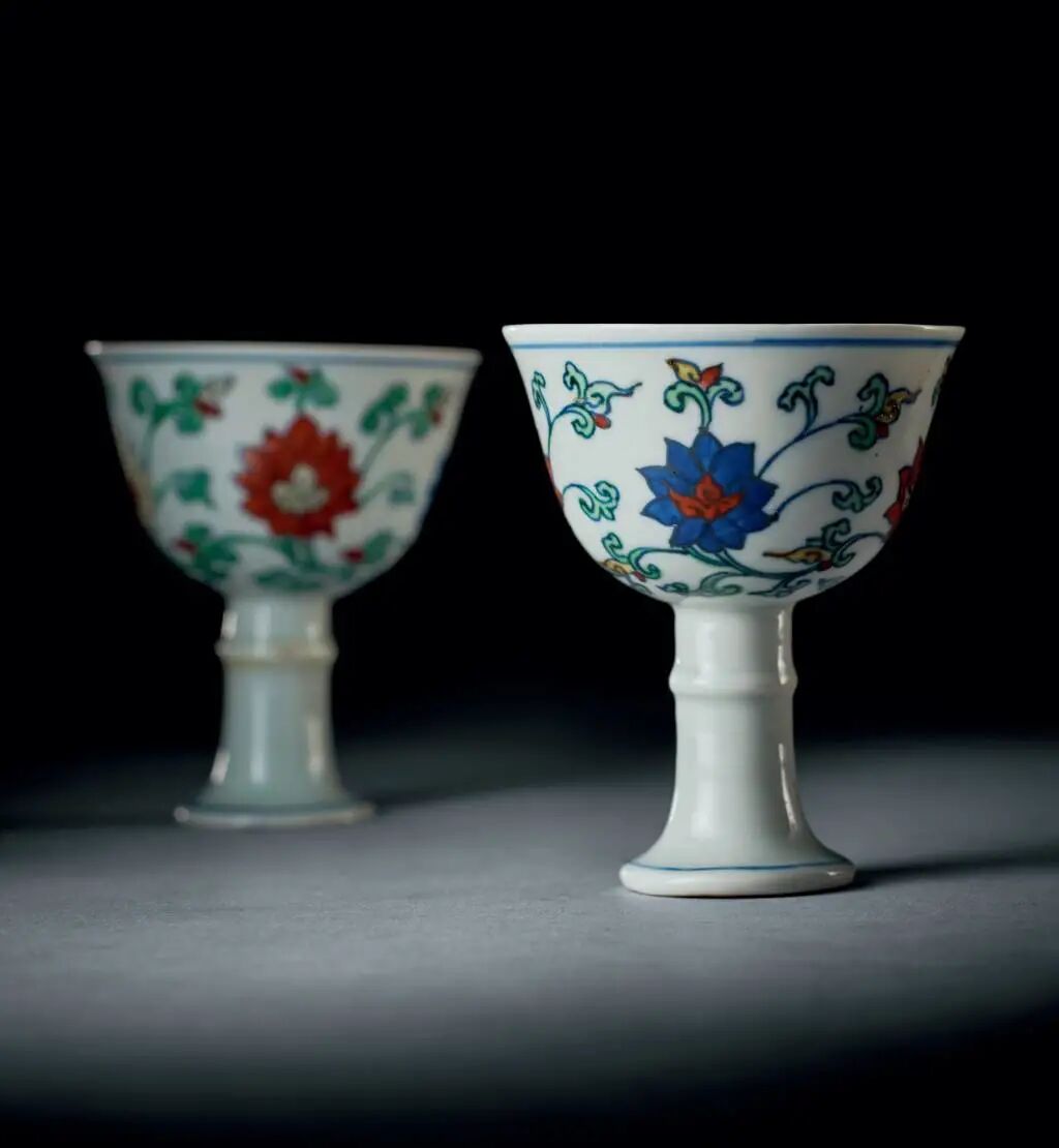 明萬曆 鬥彩寶相花唐草紋高足杯一對