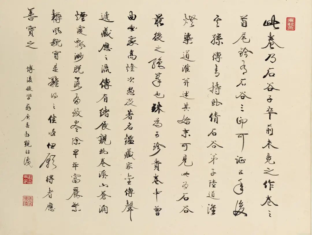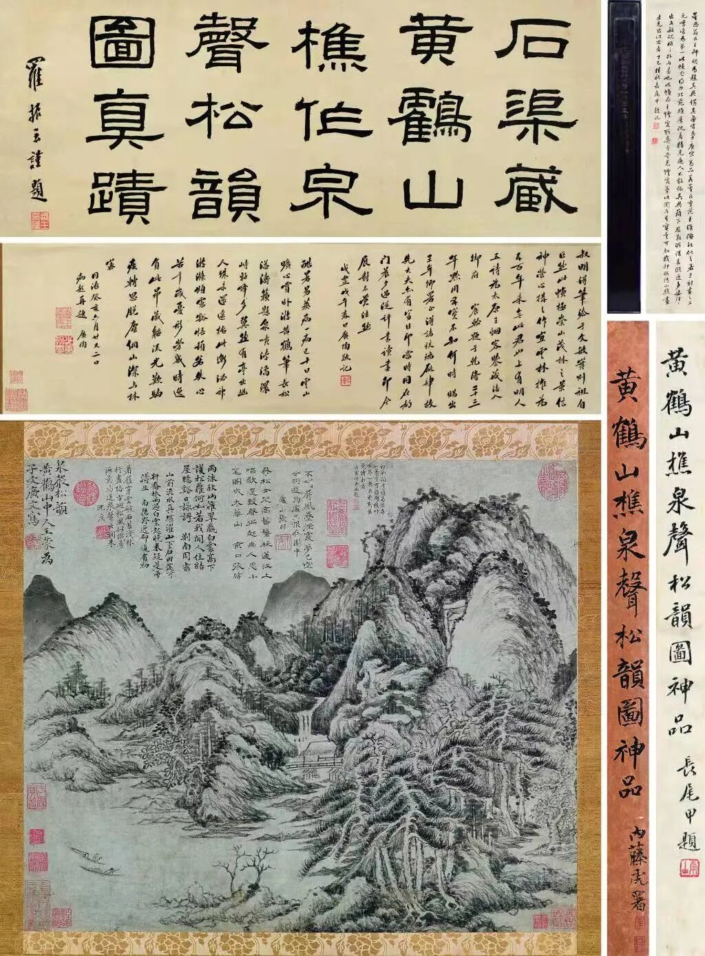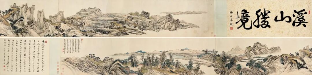 前面有题签是当时广东省的鉴定大师,鉴定大家苏庚春先生的,题引首“溪山胜境图”。作品是原装原裱的,后面有王石谷的弟子陆陆道淮的题跋。