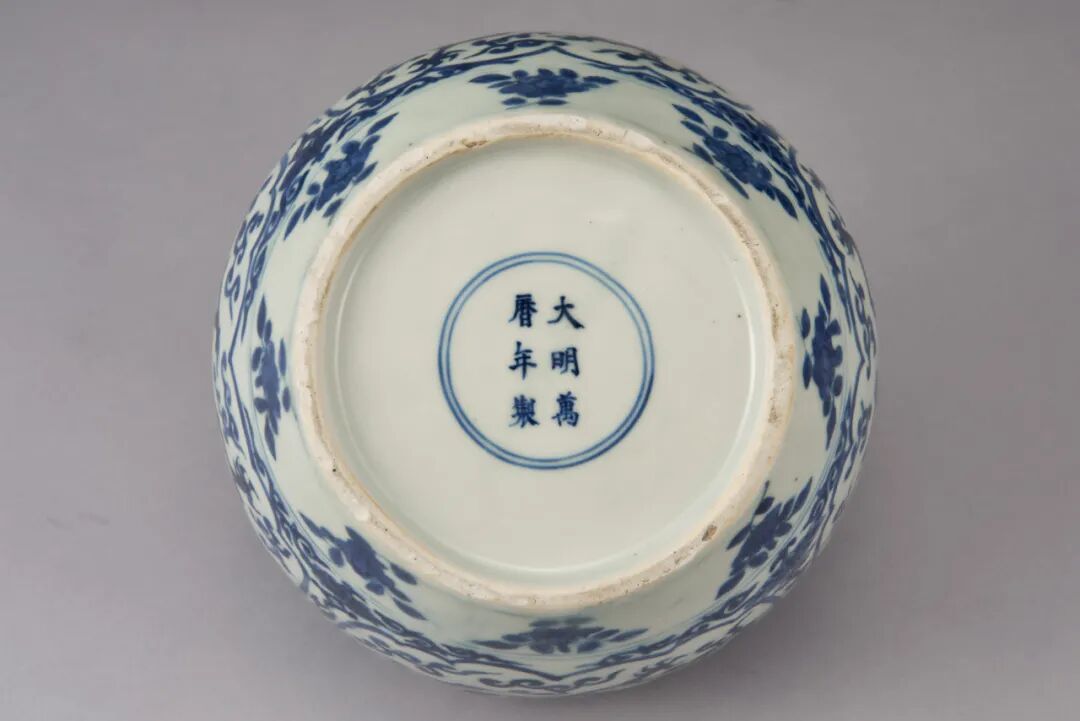 花口折沿盆是明万历官窑烧制的大件器型之一。渊源自唐宋,当与宣德青花折沿盆有直接沿袭关系。