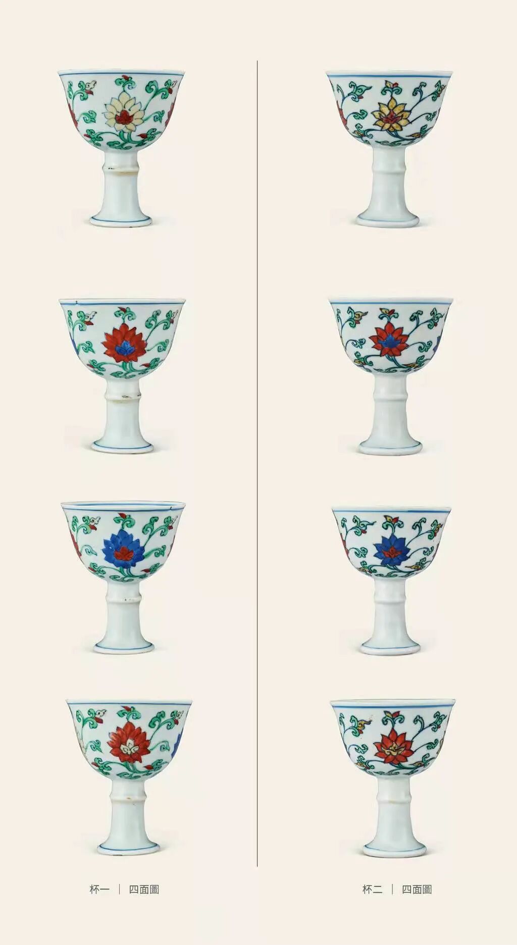 鬥彩寶相花唐草紋高足杯一對