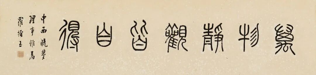 东京中央唐维:接下来我们要介绍我们日本重要政治同一收藏专题。第一件1025号是罗振玉的篆书诗文横批,这幅是罗振玉的篆书,也是一副横批,相当于一幅匾额,书法非常的写得非常的静谧。