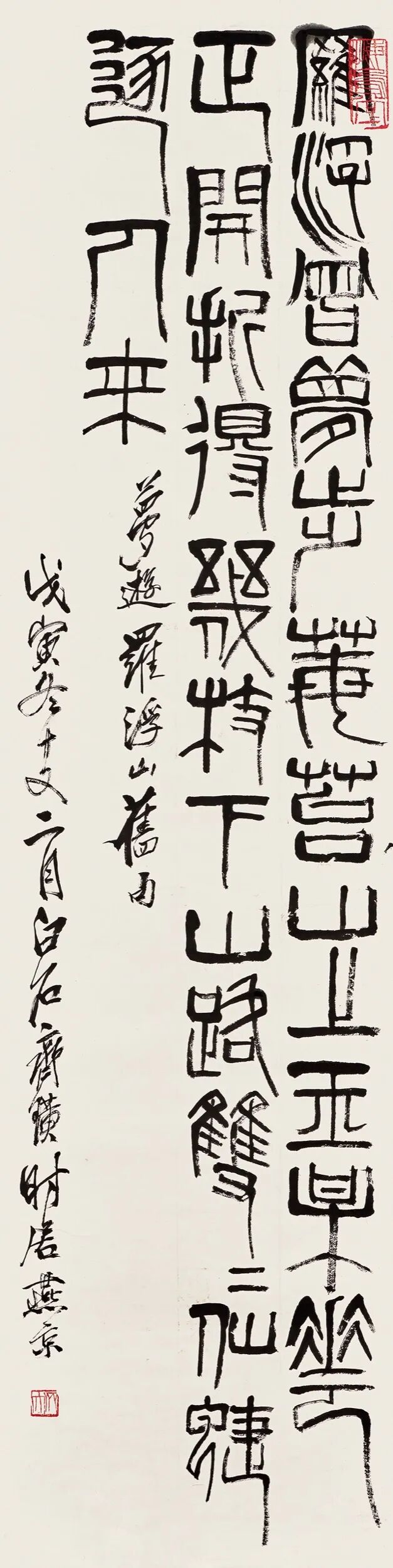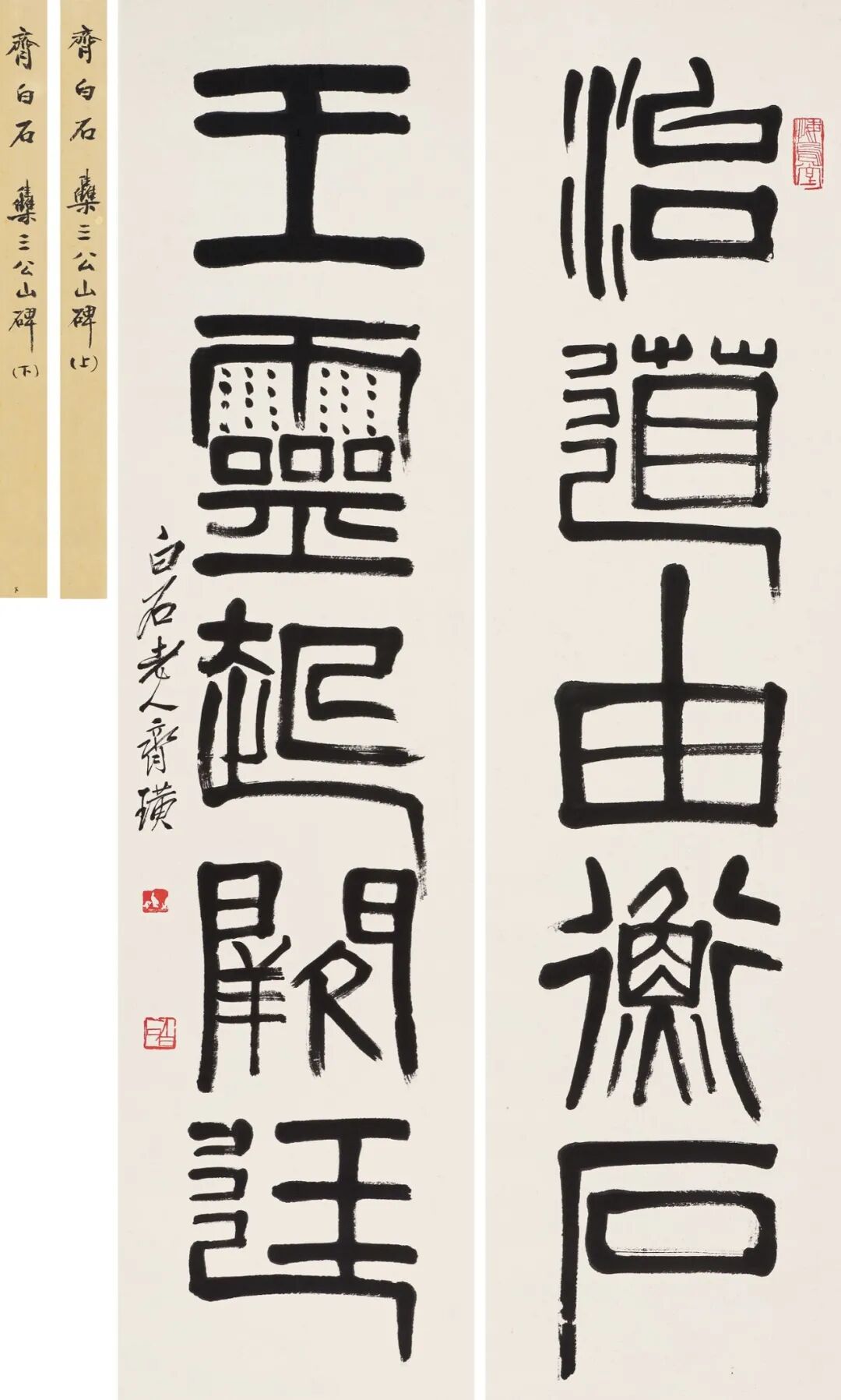 我们再看王福厂的篆隶,也是古拙,你看他的提摁起止转折都是非常的圆润,一种圆润浑厚的效果,结体又是比较准确,规则不失灵动,这两幅作品都是非常的细腻的。