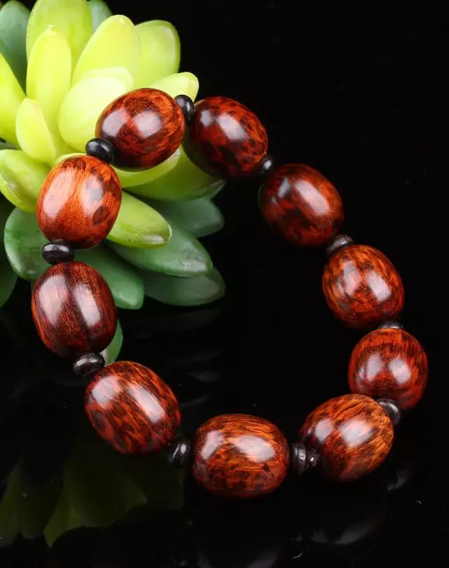 形状如枣,在紫檀变为红色的时间里,犹如一颗颗丰满的大枣,是幸福、吉祥、红红火火的象征。