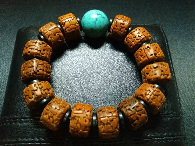 刻有神兽、十八罗汉、莲花、宗教文字等各种题材,代表不同的寓意,俗话说:“好料不雕、无绺不雕花”故常见于普通料质,多数为机器雕膜,然后人工修行,工艺不同价钱差别也很大。