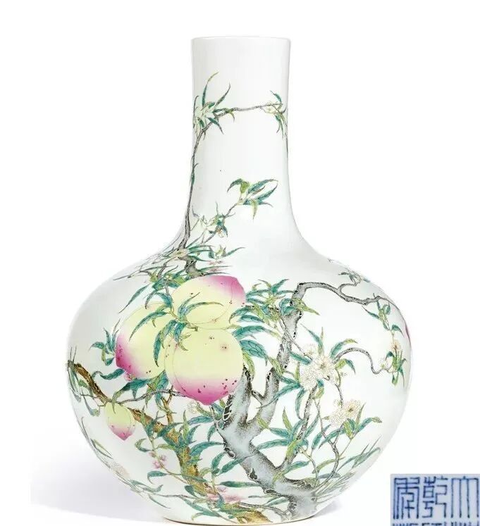 清乾隆粉彩九桃纹天球瓶