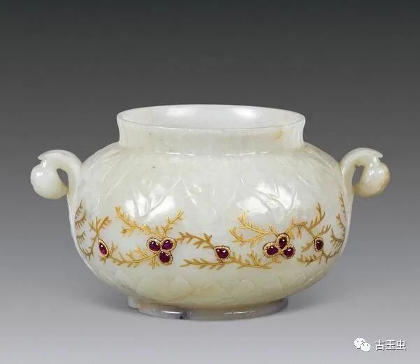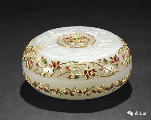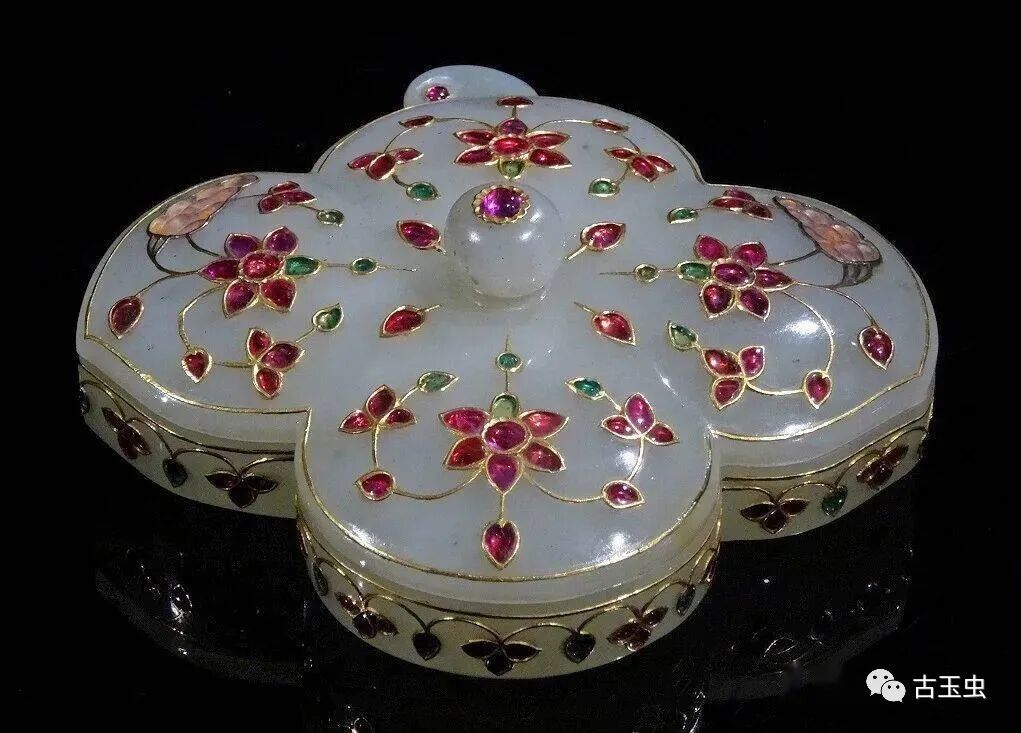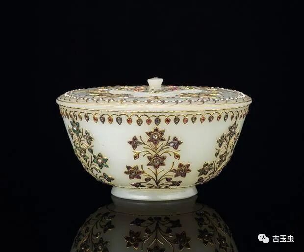 清乾隆 痕都斯坦式白玉错金嵌宝盖碗