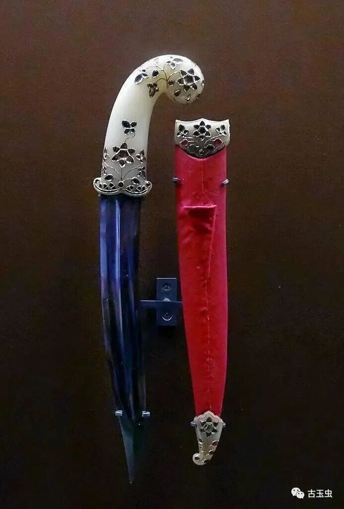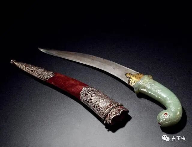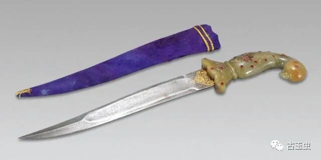 清乾隆 白玉痕都斯坦嵌宝石玉柄刀