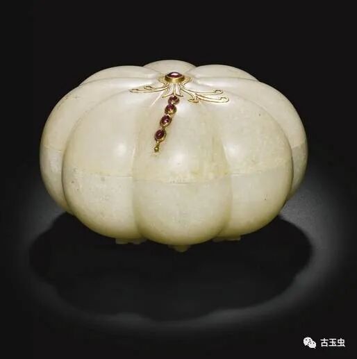 清19世纪 痕都斯坦式青白玉错金丝嵌宝石瓜形盖盒
