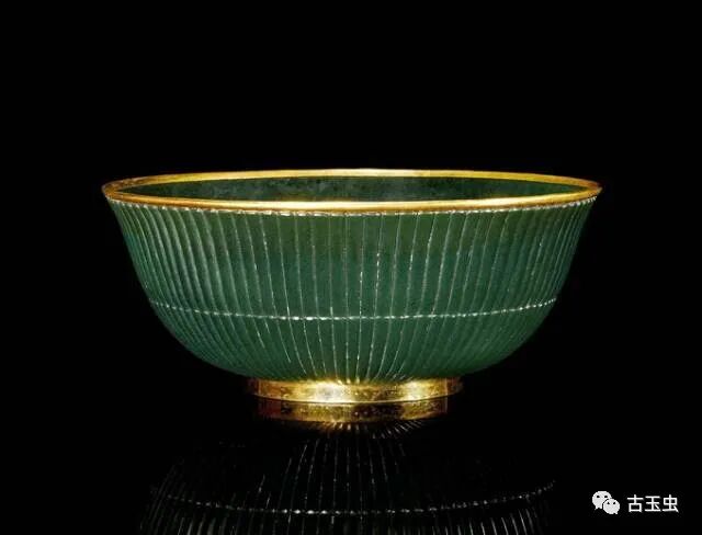 清乾隆 碧玉雕痕都斯坦式嵌宝石花式盏