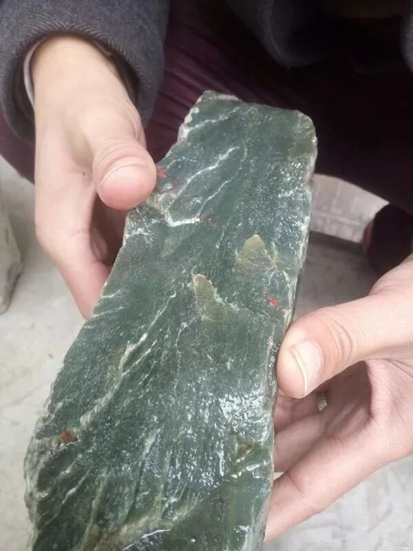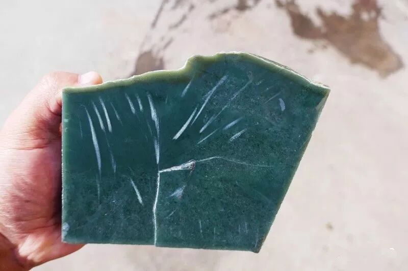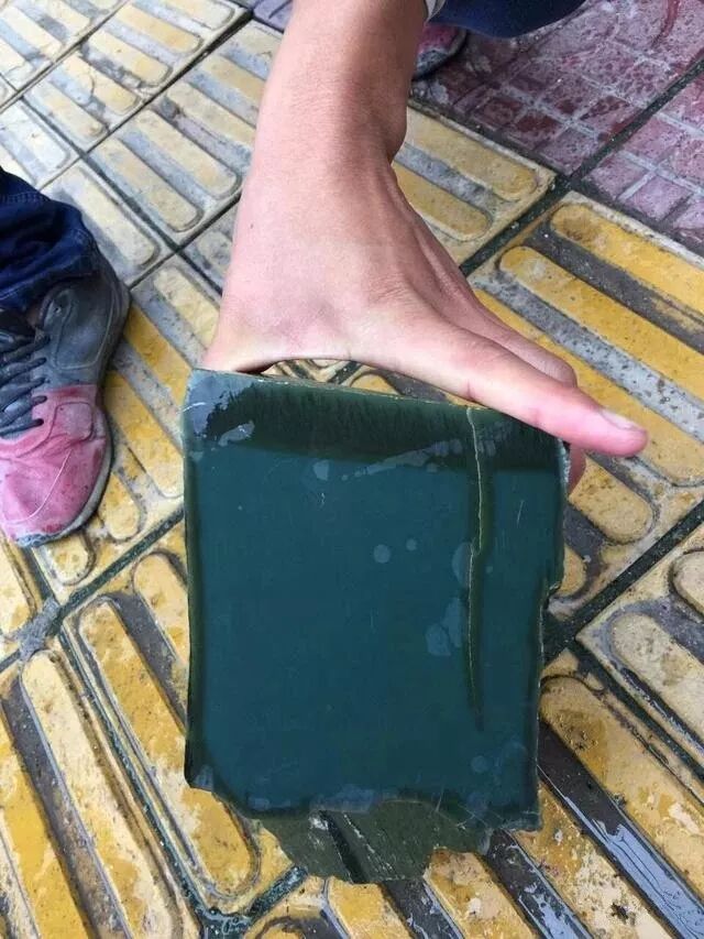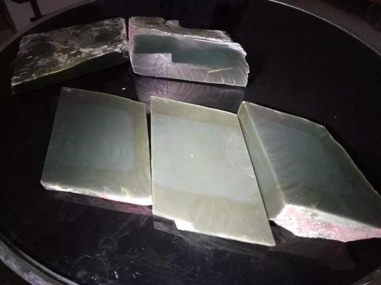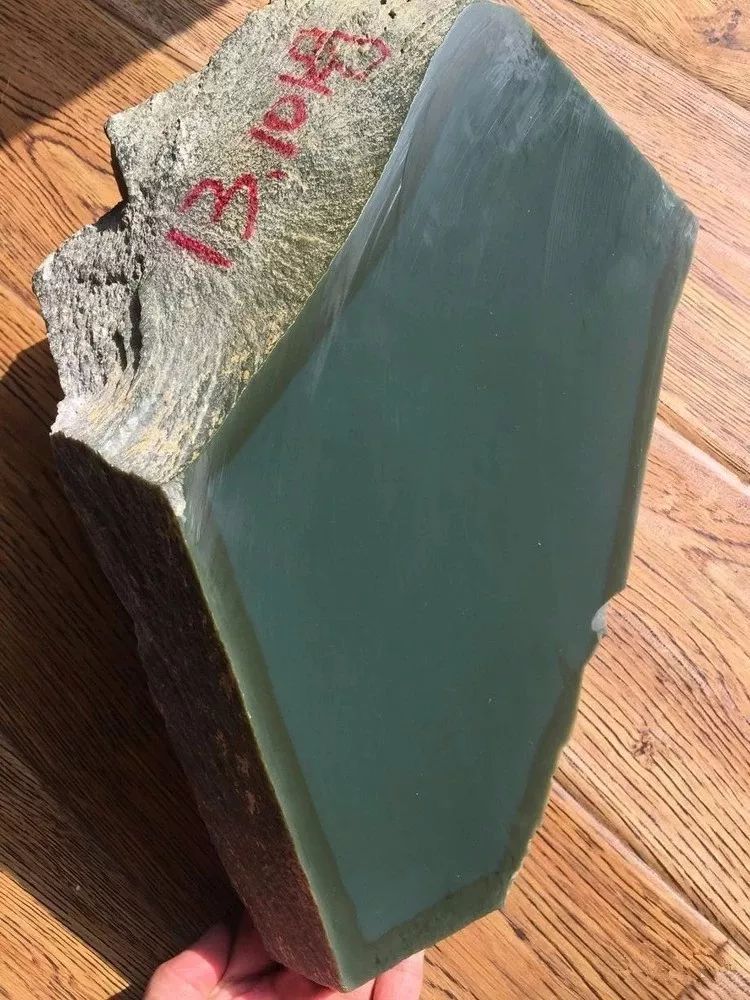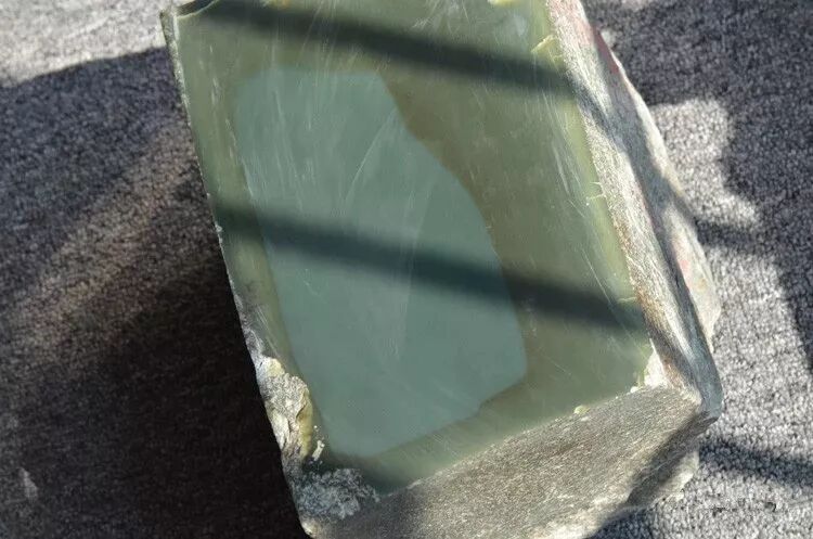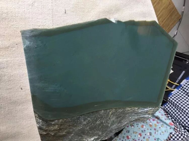 下面这块一共三十多公斤,已经是半明料,但仍然有风险,随便说下别以为三十多公斤这样半明料,毛料是大几十公斤,其实蓝调青海青大多是夹层料,可能几百公斤的毛料,最多切出二三十公斤的纯肉,其他全都是废料,没有用,不过拿去做大茶壶,大器皿也是可以。