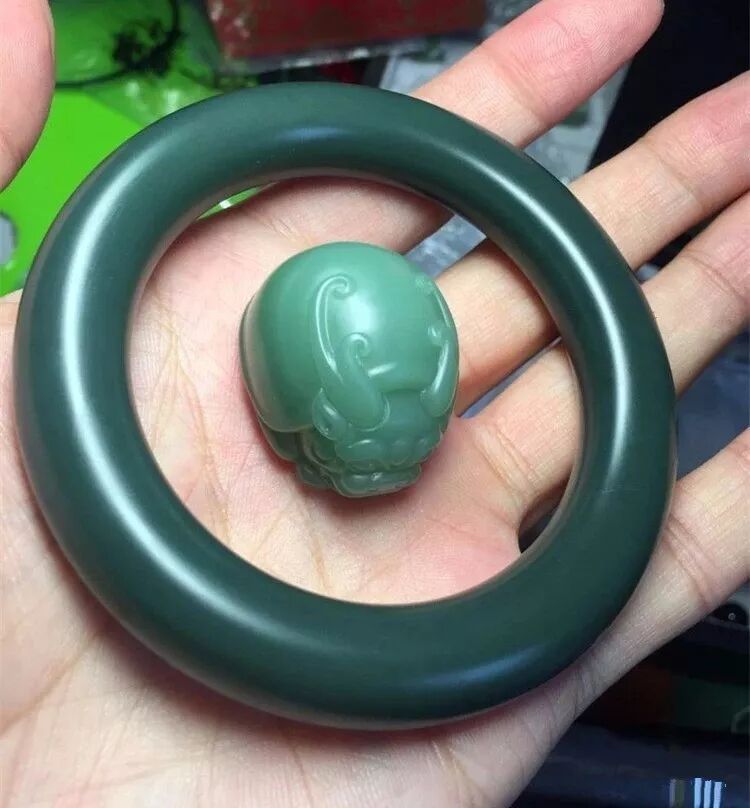 绿底青海黑青:自然光看过来是微微泛青绿,打灯透光色绿调,油性韧性也很好,玉质细腻,也是青海黑青很受欢迎的料。