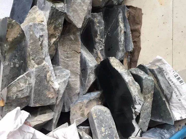 下面这张是在朋友的店里拍的,堆放上吨的黑青料,但能真正入眼的很少,当然我对品质的把握是比较高。人家这些料子总体还是不错,都是人家切了几吨的料,才攒下来的。