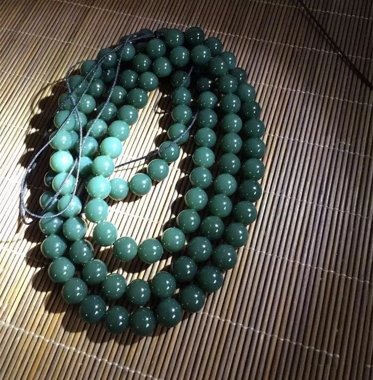 不同的蓝调青海青,色也是有点不同的,所以挑青海青珠子就麻烦就是色差,塔青就不怕了,大多色调都比较一致。有些蓝色调淡一点,玉质不如蓝色调深一些的,蓝色调深点,感觉脂粉更好一些,有浑厚感。说了蓝调青海青那么多优点,但它不是第一眼美女,而是要细细品味。