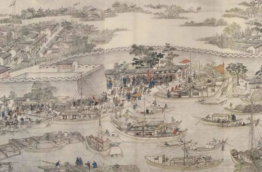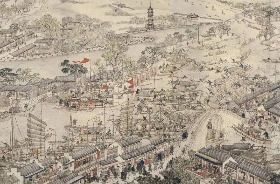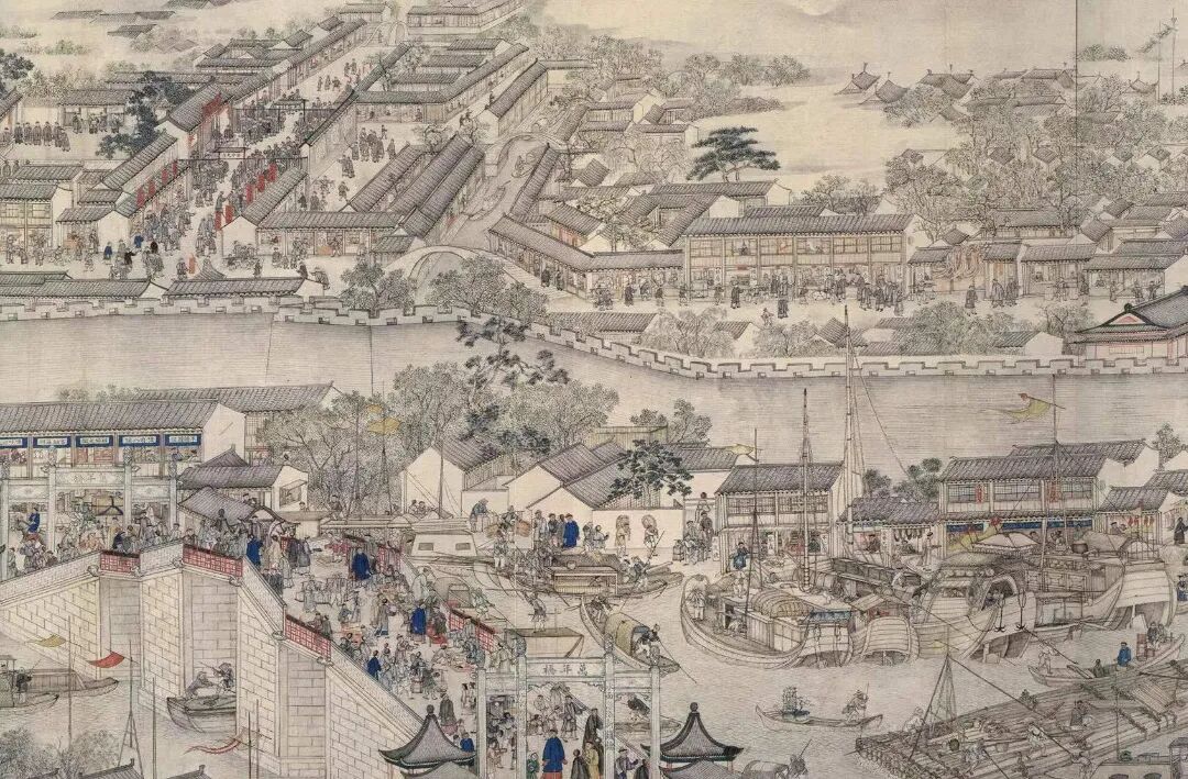提起甪直、周庄、南浔等江南古镇,想必大家脑海中呈现的是一幅商店林立、熙熙攘攘之景。这是当代古镇给我们的直观印象,那明清时期的江南古镇又是怎样一番景象呢?让我们从江南古镇的兴起开始探索。市、镇指代本不相同,市之起源早于镇。市源于先秦时期,如《易系辞》载:“日中为市,致天下之民,聚天下之货,交易而退,各得其所。”《说文解字》将“市”释为“买卖所”,即“市”为商品交易场所。根据《考工记·匠人》的记载,匠人在城市规划中专辟某块区域设置“市”。商品交易有利可图,这驱使行商(商旅)们赴市经营牟利。商人介入的增多、市的规模扩大,自然引起政府关注,他们一方面采取防止盗贼的措施,另一方面则在市中设置官吏,征收商业税。![]()