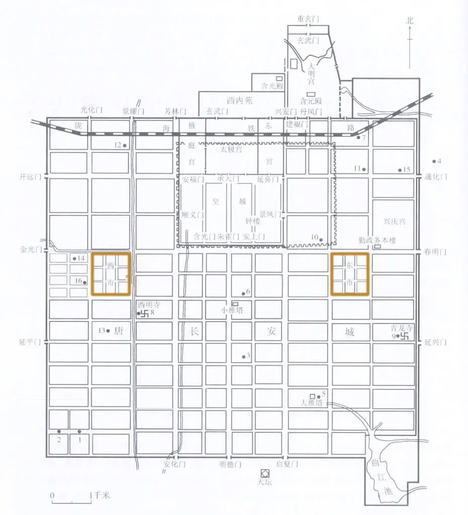唐长安城中的”市“,图源宿白《隋唐城址类型初探》