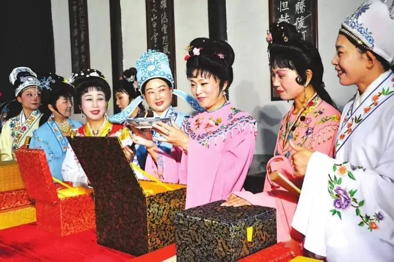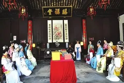 庙会一般包括祭祀、迎神、赛会等三种方式,具有求神、买卖、娱乐的功能。庙会、香市的求神活动既表现出民间的信仰,又折射出世俗化的佛道信仰,更反映了民众祈丰收盼太平的心理要求。江苏吴江县黎里镇全年庙会有三次:正月初四夜“接路头”会、正月半庙会、八月迎神赛会。农历年初五为路头财神菩萨生日,民间尤其是商家,从年初四夜即开始进行热闹非凡的接财神活动,店主将财神接进店中,可保生意兴隆、财富进门。正月半庙会的娱乐活动特别多,有吹打乐、踩高跷、荡湖船、打莲湘、提花灯、抬老爷(菩萨)、舞龙舞狮等,庆贺新春,祈求丰年,与神共乐。黎里镇全年最热闹的庙会为农历八月迎神赛会,从八月初一到八月十六,天天出会,阵容整齐庞大,队伍浩浩荡荡。迎神赛会期间,市河两岸店铺张灯结彩,大户人家墙门也装上栏杆,挂上对联字画,布置一新。从各地赶来许多小商贩沿途摆摊做生意,卖梨糖膏、牛肉汤、鸡蛋糕、粉条、泥菩萨等。亲朋好友也趁此时来黎里作客,孩子欢腾跳跃,欢聚看热闹,一派节庆气象。2015年再现古代黎里八大家族中秋“显宝”,图源黎里古镇旅游