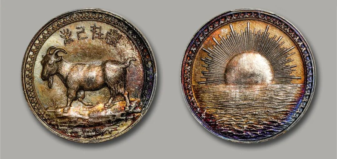 1919年天津造币厂铸“岁在己未”生肖羊背旭日初升纪念银章